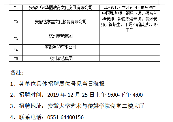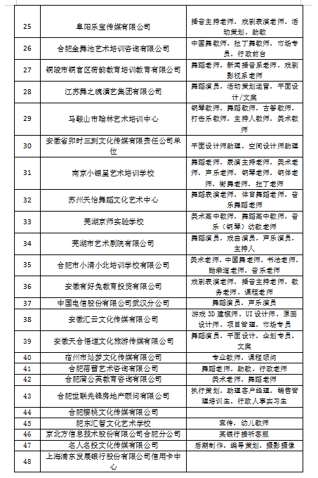 安徽大学艺术与传媒学院2020届毕业生专场招聘会招聘单位以及人才需求岗位汇总表