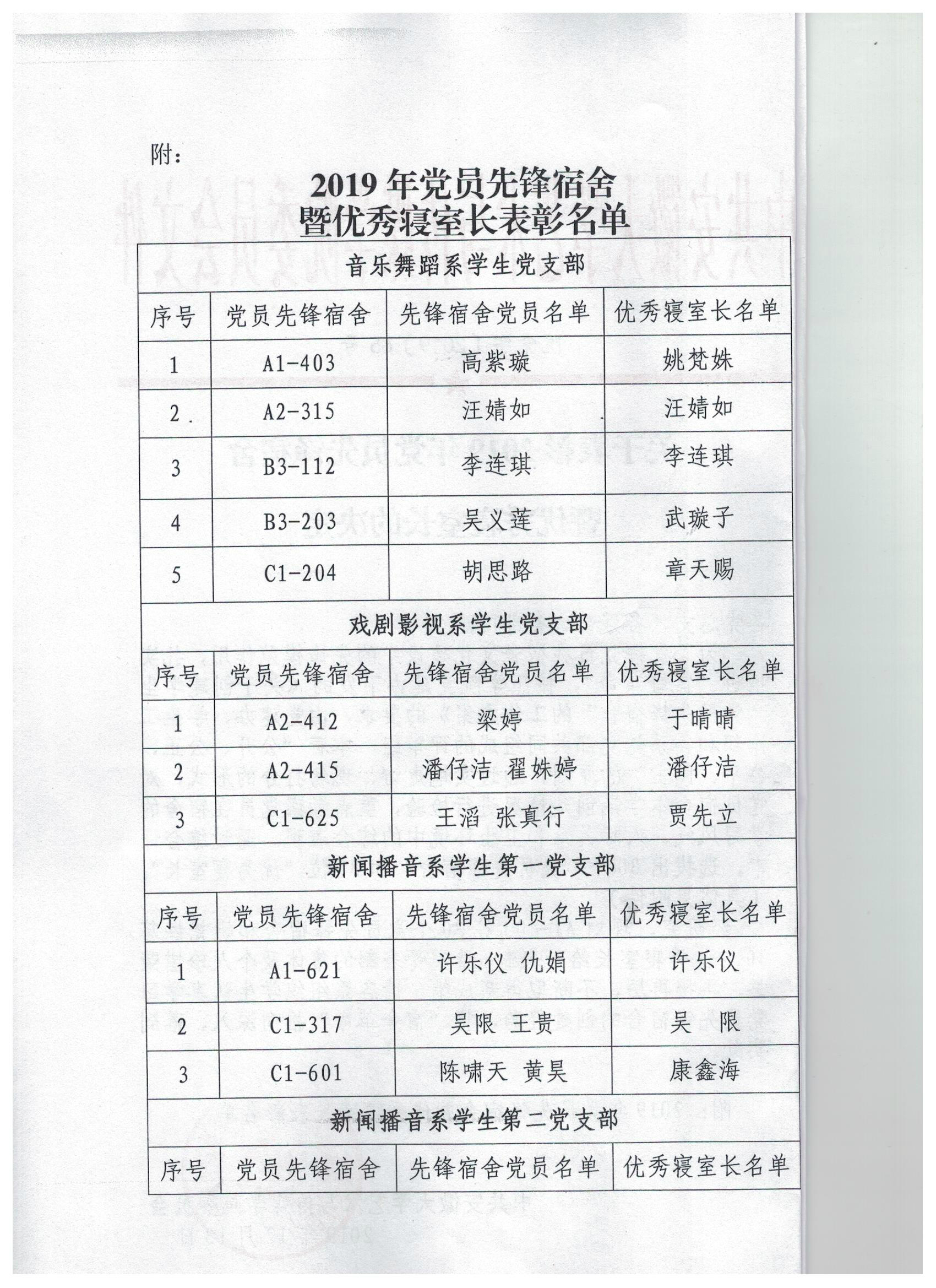关于表彰2019年党员先锋宿舍暨优秀寝室长的决定