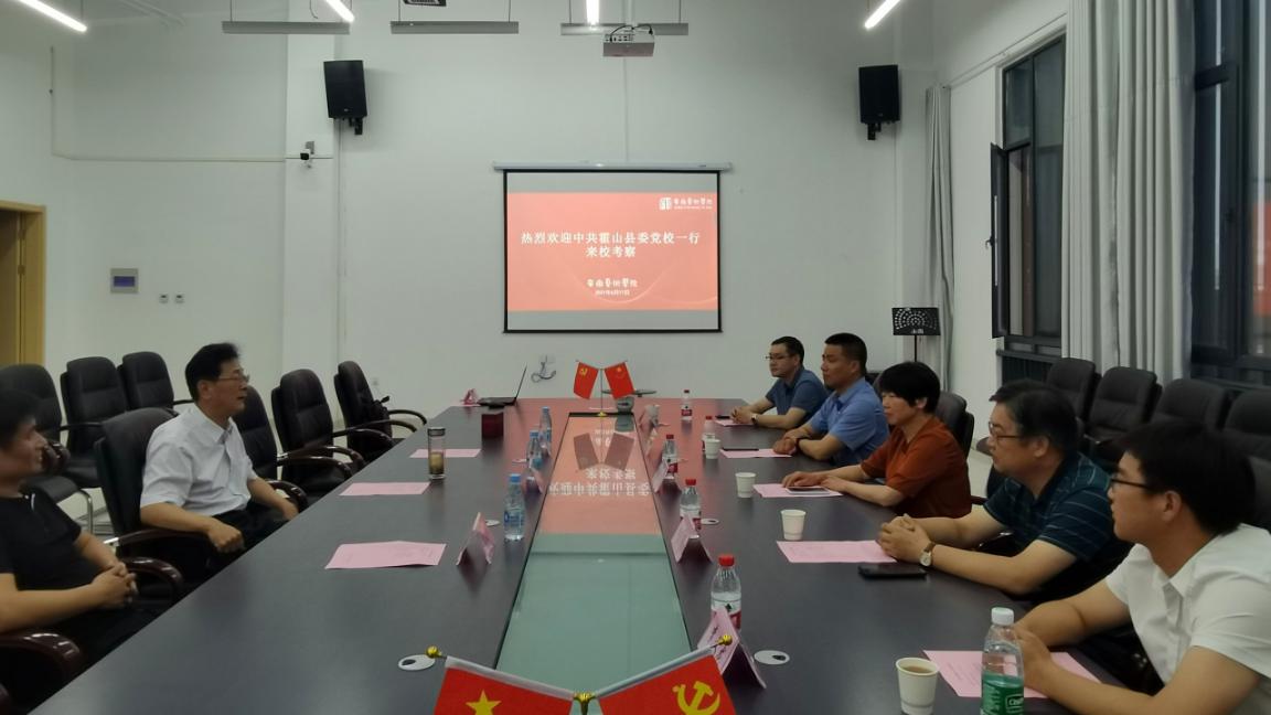 6月17日下午,霍山县委党校常务副校长何晓东、副校长余涛一行5人来我校调研。调研座谈会在舞蹈楼四楼会议室举行。校党务负责人沈端良出席座谈会,音乐舞蹈系党总支书记、系主任孙来法,系党总支副书记李传兴参会。