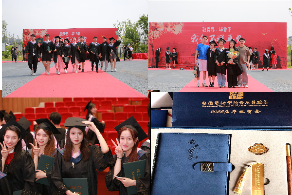 在主席台就座的校党政领导班子成员及相关部门负责人为毕业生颁发毕业证书和学位证书并为毕业生拨穗正冠。典礼开始前,全体领导、老师与2022届毕业生合影留念。典礼结束后,系部为毕业生发放精美的毕业纪念品。