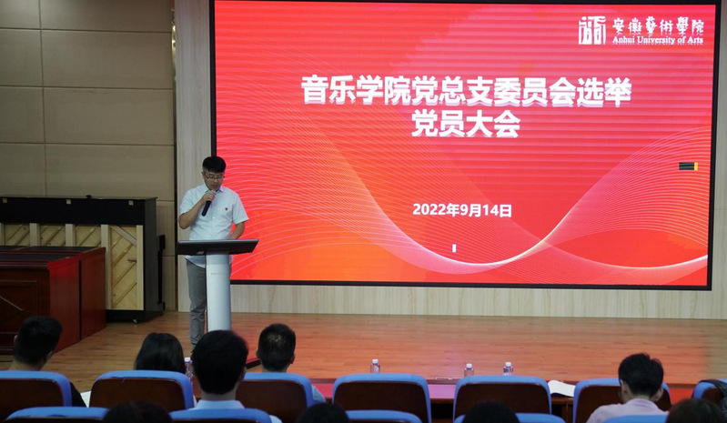 9月14日下午,中共安徽艺术学院音乐学院总支部委员选举大会在音乐南楼报告厅召开。经过投票选举,孙来法、李传兴、张中灿、张祖顺、梅倩、薛业浩、魏媛媛(以姓氏笔画为序)当选为音乐学院新一届党总支委员,会议由李传兴同志主持。