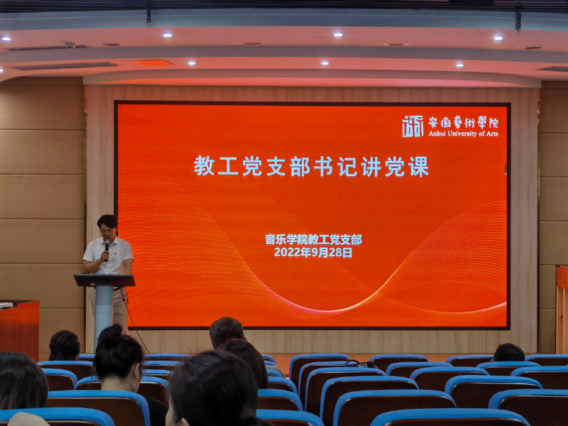 9月28日下午,安徽艺术学院音乐学院教工总支部在音乐南楼报告厅开展“支部书记讲党课”主题活动,由支部书记张祖顺为全体教工党员开讲“深刻理解新时代推进文化建设的重要意义”主题党课。