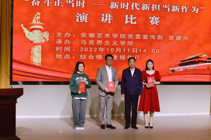 10月11日下午,由安徽艺术学院党委宣传部、党建办主办,马克思主义学院承办的“奋斗正当时——新时代新担当新作为”演讲比赛在综合楼五楼报告厅如期举办,音乐学院党总支教工支部书记张祖顺作为音乐学院党总支教师代表参赛并荣获教师组“一等奖”。音乐学院党总支荣获“优秀组织奖”。校党委书记周明洁,校宣传部、党建办和马克思主义学院领导莅临指导并颁奖。