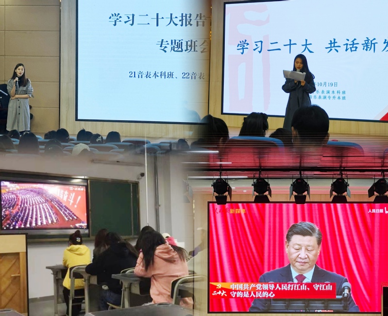 10月16日上午10时,中国共产党第二十次全国代表大会在北京人民大会堂开幕。习近平代表第十九届中央委员会向大会作报告。为学习好、理解好党的二十大重要精神、为全面推进中华民族伟大复兴贡献青年力量,音乐学院辅导员在17日-18日两天以班会的形式开展集体学习。