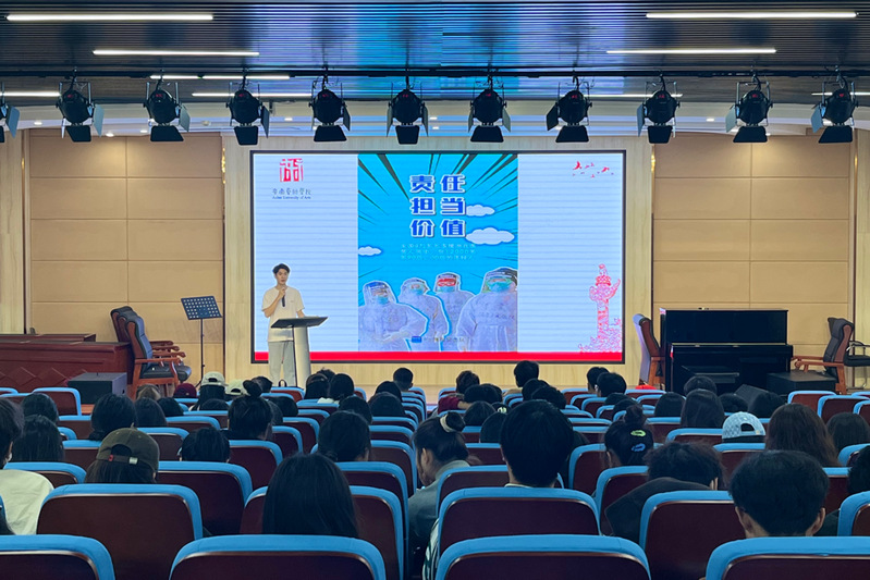 为深入学习宣传贯彻党的二十大精神,11月9日中午,音乐学院团总支在音乐南楼报告厅开展主题宣讲活动。本次活动邀请到校大学生宣讲团成员宋天宇同学到会宣讲,学院团总支书记梅倩主持。宣讲以全国劳动模范管仕忠的真实事迹为切入点,讲述了管仕忠在上海市仙桥村的疫情防控中始终身体力行,用逆行的身影护航全村百姓的生动故事。管仕忠“站”在前沿,“战”在前线,面对疫情从不松懈,用实际行动诠释着自己的责任与使命,为青年一代的我们树立了榜样。