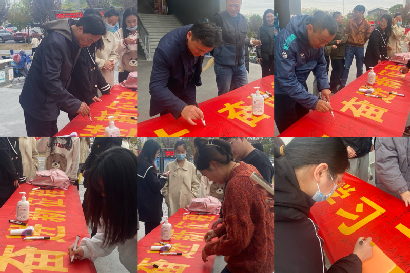 中午12点,学生党支部的同学们在食堂门口进行“学习二十大,奋进新征程”横幅签名活动,以此激励同学们青春心向党、永远跟党走的情怀,校党委委员、纪委书记宣扬,党委委员、办公室主任曹晓富等同志参加。