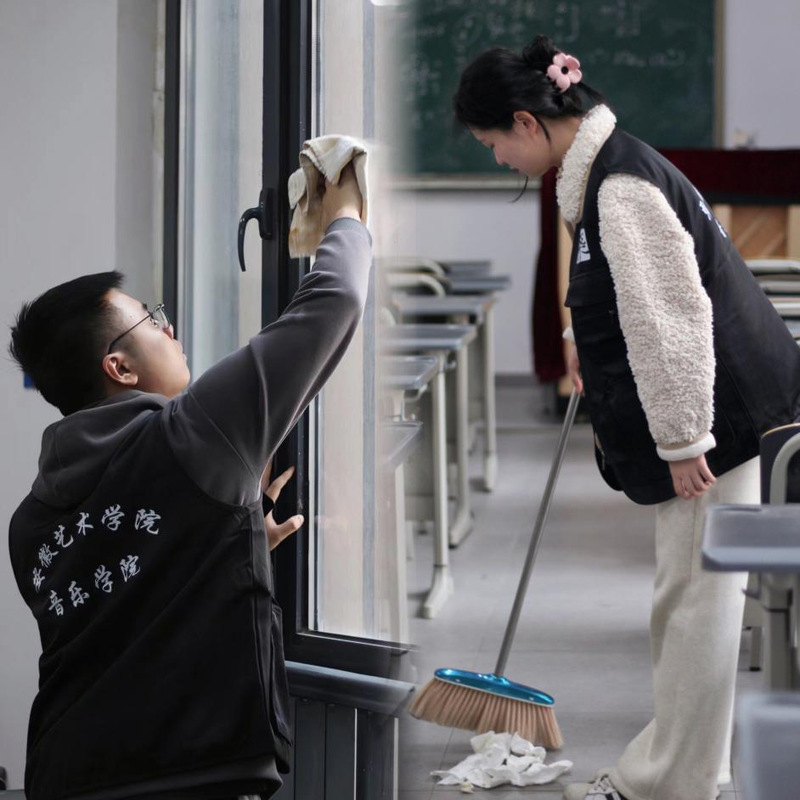 午间明媚的阳光洒进校园,志愿者同学们准备好工具前往公共区域。他们仔细清扫着校园主干道上的白色垃圾与落叶,擦拭着教室里的讲台、课桌、窗户。大伙儿不怕脏、不怕累,每个人都干得热火朝天,在春意盎然的校园中,同学们积极地为校园环境贡献自己的力量,忙碌的身影随处可见。