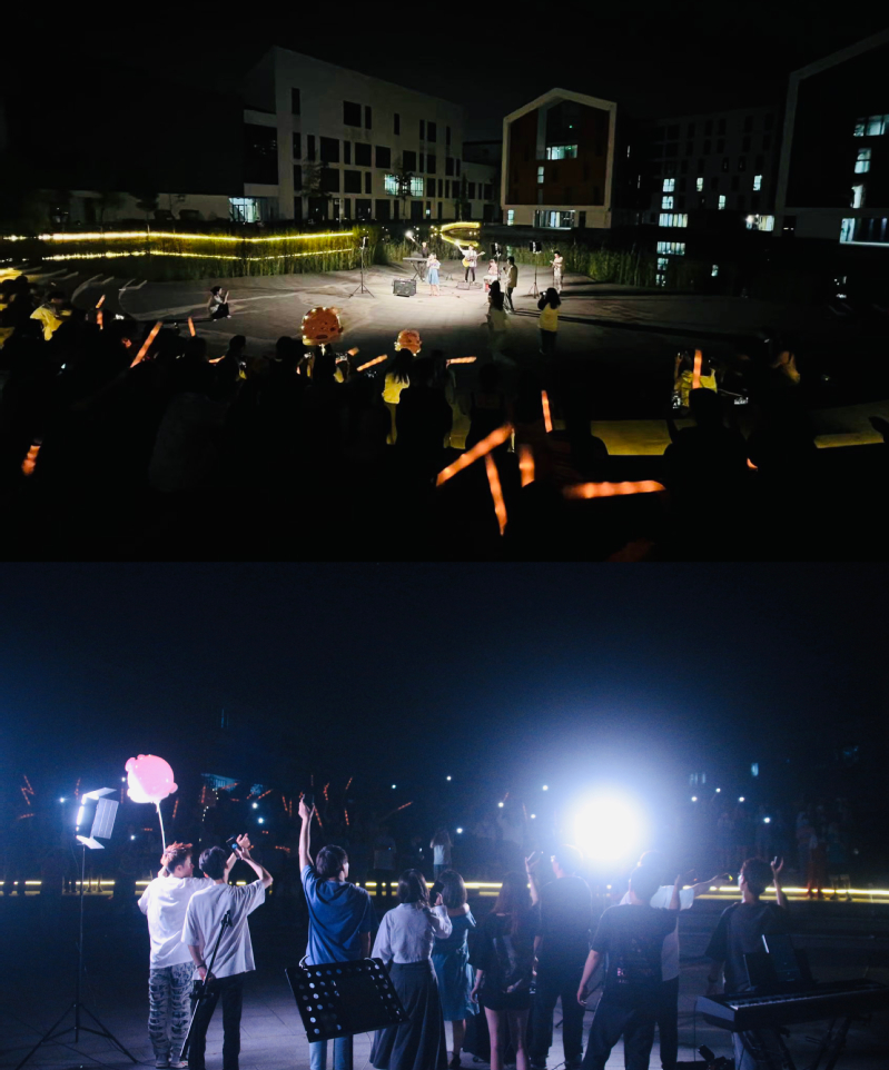音乐会曲目有经典的流行歌曲与童谣,整场演出氛围热烈,台上台下互动不断,充满青春活力。