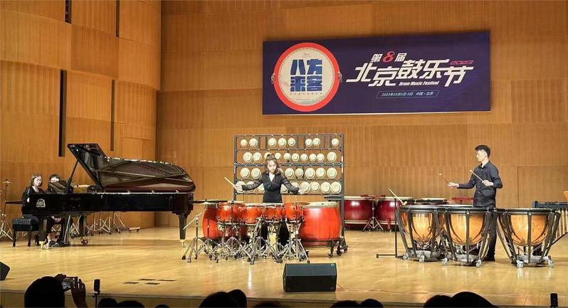 10月1日第八届“北京鼓乐节”《八方来客》打击乐专场音乐会在北京图书艺术音乐厅隆重上演,我院国乐教研室青年打击乐教师陈懿凡受邀担任独奏嘉宾,演奏了由著名作曲家关廼忠先生创作的打击乐作品《龙年新世纪第一乐章——太阳》,广受好评。