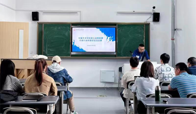 为落实高校立德树人根本任务,进一步加强青年教师队伍建设,提升青年教师教学能力和业务水平,促进青年教师研究教学规律,创新教学方法,推动课程教学改革,作曲与指挥教研室依照安徽艺术学院《关于举办第五届青年教师教学基本功竞赛暨课程思政教学竞赛活动的通知》精神,组织了教研室符合条件的四位青年教师进行教研室选拔赛活动,教研室其他成员作为评委,最终从选出夏傲老师代表作曲与指挥教研室参加音乐学院的教学竞赛。