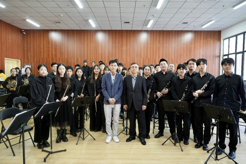 同日下午,赵瑞林在乐团排练厅现场指导安徽艺术学院管乐团/安徽艺术学院(新金帆)青年管乐团排练,开展专家课。指导排练《蓝色山脉》等作品。就指挥与乐团协同合作、引导乐团演奏最佳效果等方面提出切实的专业建议与指导。