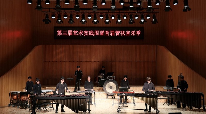 最后由两校打击乐团共同演奏《罗萨洛马林巴协奏曲第四乐章》,为此次音乐会划上了圆满句号。