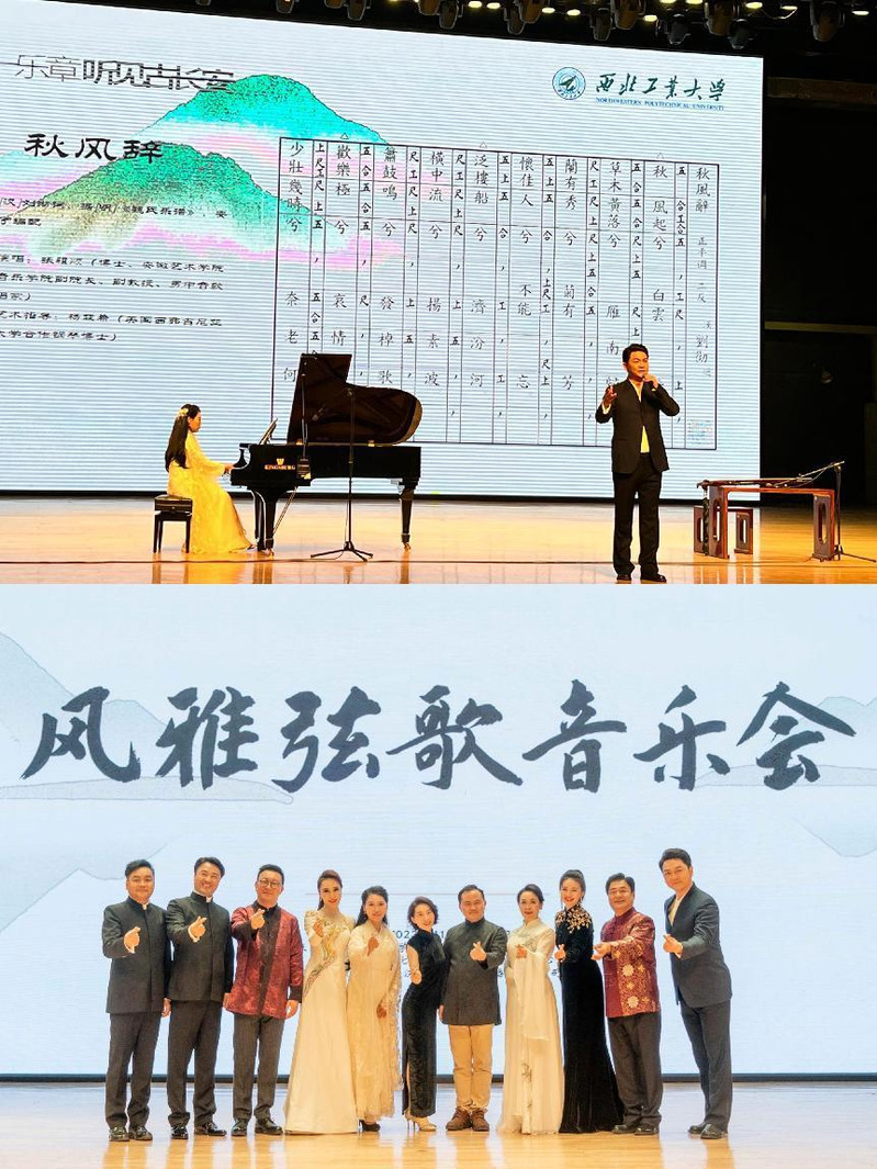 11月8日和9日,安徽艺术学院中华古谱诗词传承创新研究中心主任张祖顺受邀赴西安和来自上海、甘肃、四川、陕西的歌唱家们同台共唱,成功参演了西北工业大学“风雅弦歌”古谱诗词音乐会和西安音乐学院“长安落叶满 江南烟雨深”古谱诗词音乐会,将选自明乐《魏氏乐谱》的古谱诗词《秋风辞》唱响古都长安。