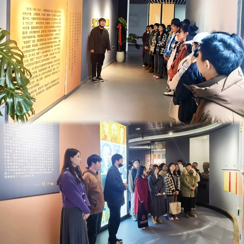 活动中,朱泽军向大家讲述了刘北茂的生平、“刘氏三杰”的事迹以及刘北茂支援安徽音乐事业发展的故事,并带领同学们参观了刘北茂艺术馆中展出的文物、图片和影像资料。朱泽军介绍道,作为现代著名二胡演奏家、作曲家、教育家,刘北茂是刘天华事业的忠实继承者和发展者,刘天华逝世后,他继承其兄“改进国乐”的遗志,为我国现代二胡事业的发展做出了一定的贡献。通过参观艺术馆,我们回顾刘北茂先生的一生,这既是面向历史的纪念,更是走向未来的传承。