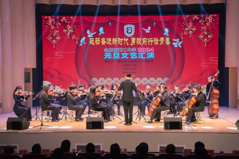 2023年12月29日下午,安徽艺术学院“文艺轻骑兵”小分队携手安徽艺术学院弦乐团助力合肥二中2024年元旦文艺汇演暨第七十一届校园文化艺术节闭幕式。