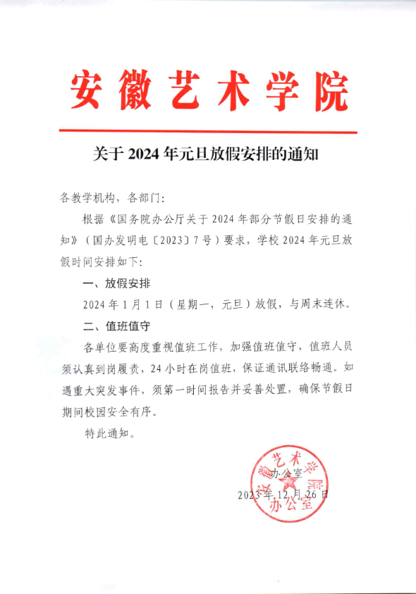 关于2024年元旦放假安排的通知