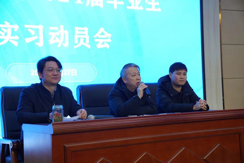 会上,张祖顺首先向毕业生介绍了本次实习的前期准备工作及后续计划安排。李伟强调,实习是毕业生迈向社会的关键一步,是一次磨砺人生、积累经验的宝贵机会,他鼓励毕业生实习视作通向上岗就业路途的垫脚石,提醒同学们在实习过程中注重与人沟通、学会团队合作,努力提升自己的职业素养和综合能力