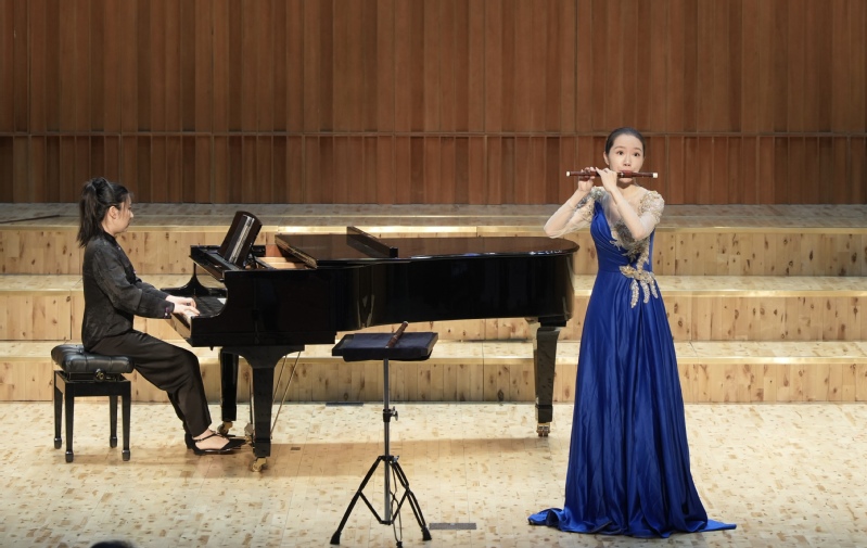 在刚刚结束的文旅部第八届全国青少年民族器乐教育教学成果展示活动初评中,我校音乐学院2023级专升本民乐班郑杉杉同学以出色的表现杀出重围,入围吹管乐器青年B组现场终评,实现我校在该顶级赛事中零的突破。