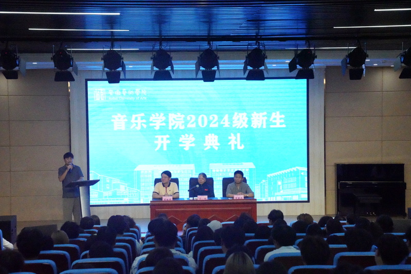 为了帮助新生快速适应大学生活,制定学习目标与计划,9月13日下午,音乐学院全体新生及学院领导、相关教师集聚音乐学院南楼报告厅,召开2024级新生开学典礼,典礼由音乐学院学生管理办公室副主任淳于义龙主持。