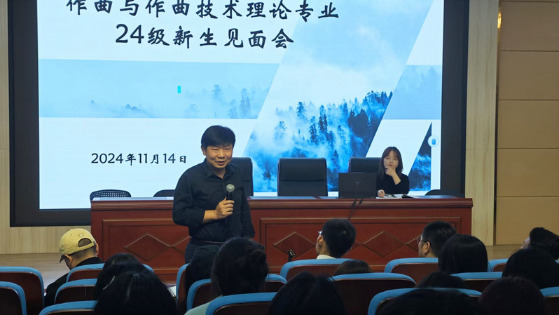 11月14日下午,作曲与指挥教研室在音乐南楼报告厅召开24级作曲与作曲技术理论专业新生见面会。此次学生大会由作曲与指挥教研室副主任袁圆主持,教研室全体教师和24级作曲与作曲技术理论专业全体学生参会。
