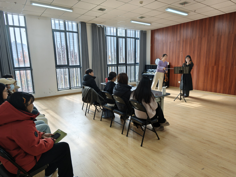 12月11日下午,胡悦教师小提琴公开课于音乐南楼214开课,管弦教研室全体教师到场观摩。