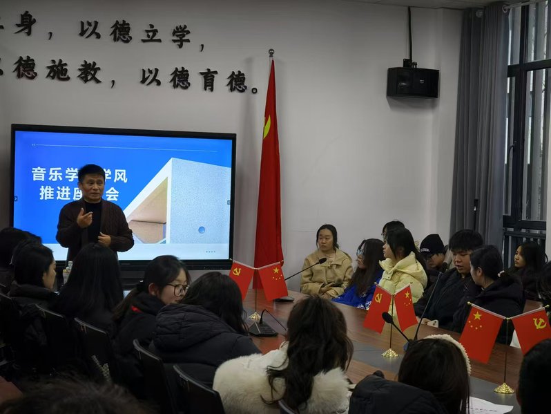 为推进学风建设,让学生深入了解学院教学模式及管理服务,进一步为学生提供更好的学习指导,音乐学院于2024年12月12日,在音乐南楼104会议室召开学风推进座谈会。学院党总支副书记李传兴出席会议。