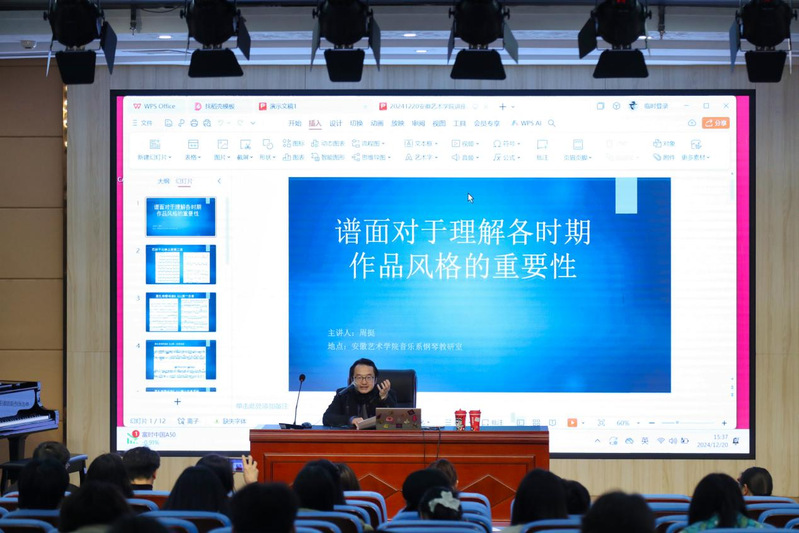 12月20日下午,上海音乐学院附中副校长、上海音乐家协会钢琴专业委员会副会长、“雅马哈”签约艺术家周挺教授实践讲座在南楼音乐厅成功举办。音乐学院党总支书记、院长李伟主持,钢琴教研室全体教师出席。