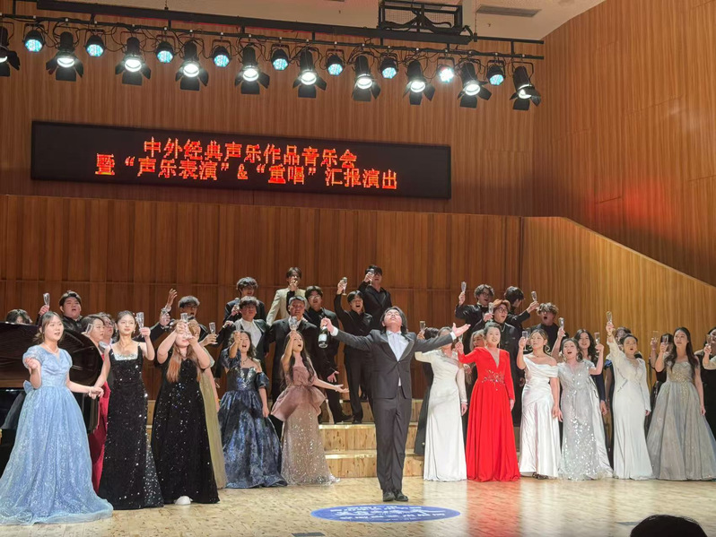 本场音乐会是声乐表演和重唱课程的教学汇报与成果展示,安艺音乐学院的学子用他们精湛的歌唱技巧,唱出声乐的魅力,其歌曲风格多元。既有深情悠扬的外国声乐作品,如《我心为你温柔之声敞开》,也有充满民族风情的民歌《哥哥撑排走丹江》等,《香槟之歌》伴随着欢快的旋律将全场气氛推向高潮,最后一首《告别时刻》为本次音乐会画上完美句号。他们用动人的嗓音,传递出细腻情感,展现声乐艺术魅力。