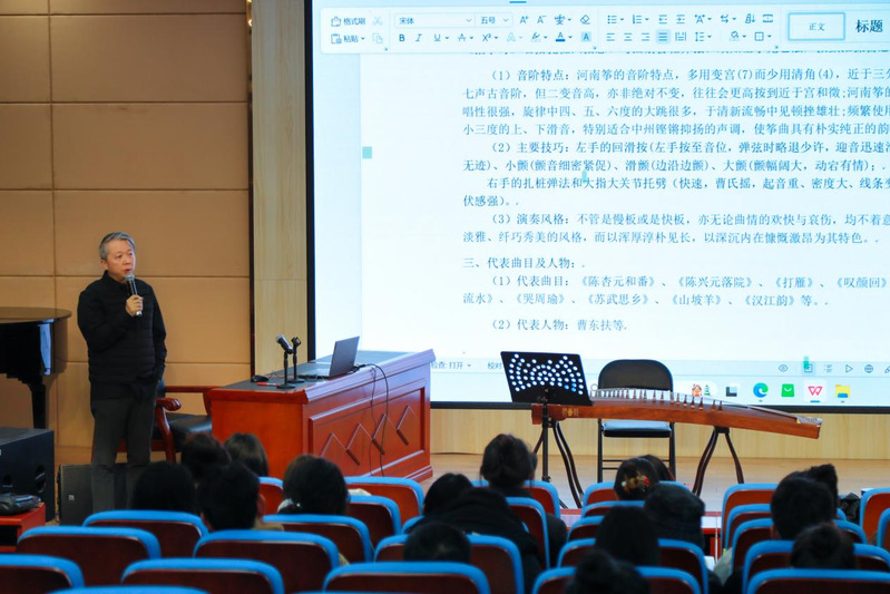 12月25日下午,由国乐教研室、安徽中音古筝文化交流中心联合主办的古筝讲座在音乐学院学术报告厅成功举办,音乐学院党总支书记、院长李伟教授以《河南筝曲演奏解析》为主题开讲。学院古筝专业全体同学,其他专业学生以及部分教师到场观摩。