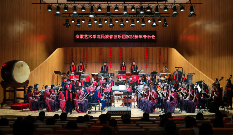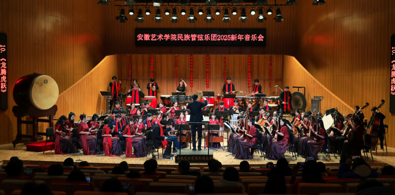 龙腾虎跃辞旧岁,金蛇狂舞贺新春,1月7日下午,安徽艺术学院民族管弦乐团2025新年音乐会在音乐南楼隆重上演,校党委书记韩军、副校长柳友荣与学校部分职能部门领导莅临现场,与广大师生共赏音乐盛宴。