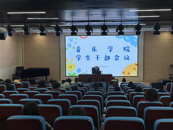 2025年2月27日,安徽艺术学院音乐学院在音乐南楼报告厅召开学生干部会议,由团总支副书记胡曦雯主持。会议分为班团组织和学生会两部分。