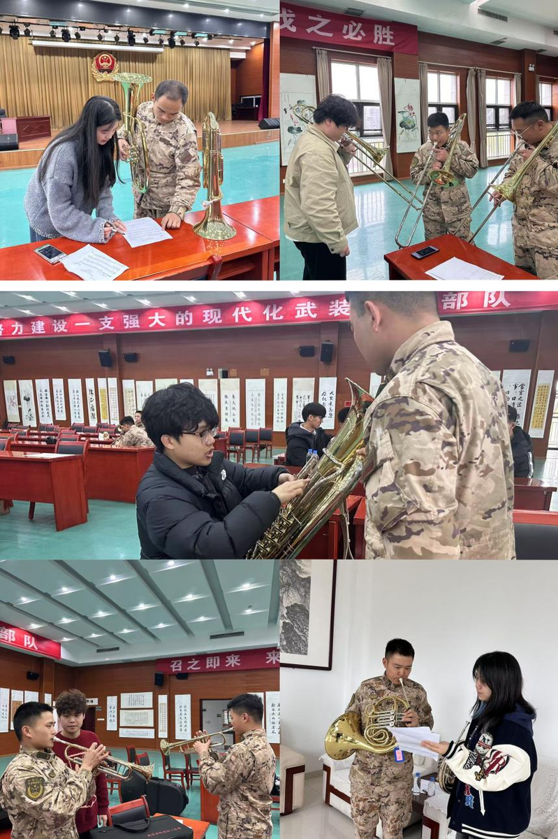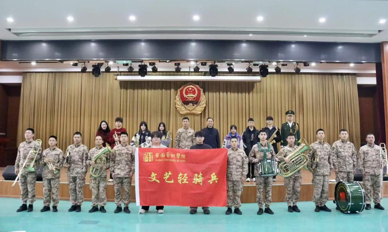 安徽艺术学院音乐学院选派了四名优秀学生组成“文艺轻骑兵”小分队与合肥市第二中学师生一同为武警部队军乐队提供专业指导,从演奏技巧、乐曲编排到团队协作进行全方位交流,助力提升军乐队的艺术表现力。