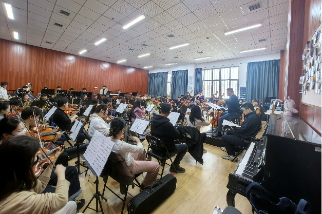 3 月 27 日下午,在音乐南楼 302 排练厅,原创作品《大别山交响曲》系列活动——第三乐章作品联排圆满举行。此次活动特邀《大别山交响曲》作曲家,星海音乐学院作曲系教师,安徽艺术学院外聘教师胡蘅鸾全程参与指导。