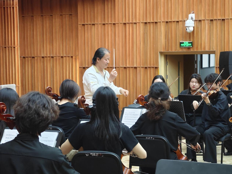 排练现场,周晓平从节奏把控、声部配合及情感表达三个方面悉心讲解、精准示范,助力乐团对作品的处理与演绎更加细腻、精湛。