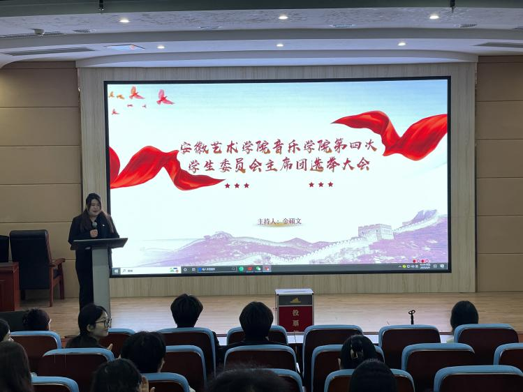 根据《学联学生会组织改革方案》及学生组织章程规定,2025年5月9日,安徽艺术学院音乐学院第四次学生委员会主席团选举大会在音乐南楼报告厅举行。音乐学院团总支副书记胡曦雯及23名学生代表出席,会议由学生会主席团成员金硕文主持。