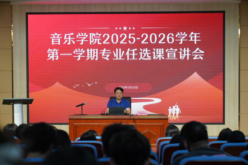 2025年5月28日下午,音乐学院在音乐南楼学术报告厅举办2025-2026学年第一学期“专业任选课”选课宣讲会。此次会议由教学副院长张祖顺主持,教学科研办公室副主任朱临吉、全体专业任选课授课教师以及全院学生共同参会。