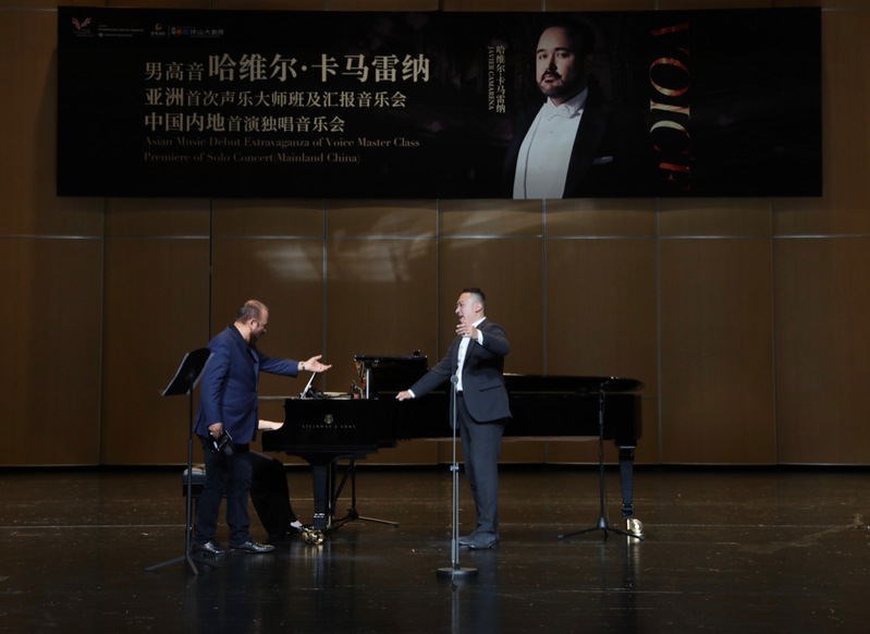 5月28日~5月31日,我院青年声乐教师李成锐作为在全国范围选拔的12位明星学员之一,代表我院参加了世界著名男高音歌唱家哈维尔·卡马雷纳的亚洲首次声乐大师班(深圳文博会艺术季和深圳坪山保利剧院合作的重磅艺术项目),并在深圳坪山大剧院大师班汇报音乐会上与哈维尔同台演出。