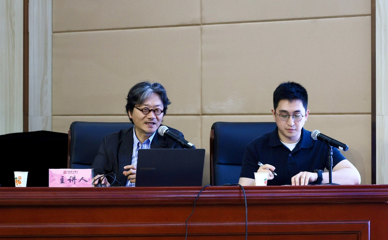 金教授以木管五重奏《在月球》和伽倻琴与大琴弦乐团《旻河》为例,深入浅出地讲解了非调性与调性在音乐创作中的协调处理。他详细解读了《在月球》中各乐器声部的音色搭配与和声运用,以及《旻河》中传统与现代音乐元素的融合,分享了自己在创作中的思考与探索。在互动环节,金教授耐心解答同学们关于创作灵感、素材积累及技术处理的问题,给予诸多建议。