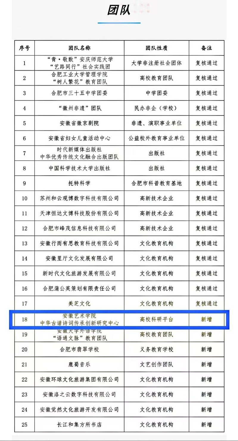 2025615日,安徽艺术学院中华古谱诗词传承创新研究中心正式入选安徽博物院2025年度“教育合伙人”团队,成为年度新增8个团队之一。