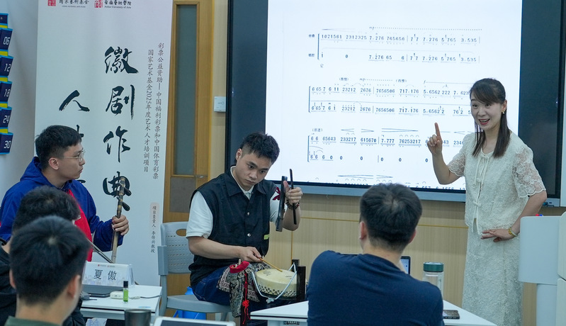 6月27日上午,在安徽艺术学院崇德楼智慧教室,著名黄梅戏作曲家、安徽国乐研究院院长徐志远讲授《戏曲音乐创作理论与实践》(一)。