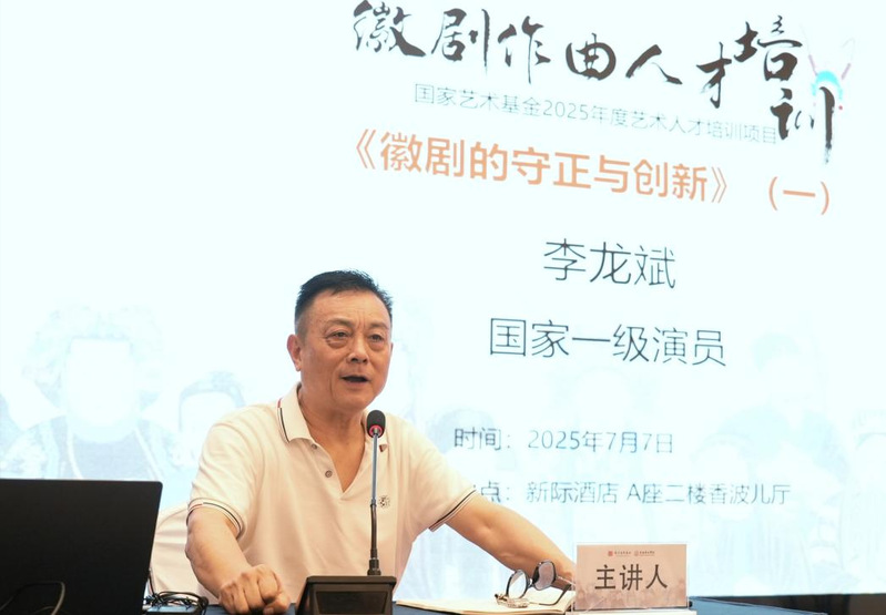 7月7日上午,著名徽剧表演艺术家、国家一级演员李龙斌为《徽剧作曲人才培训》课程带来《徽剧的守正与创新》(一)的授课。