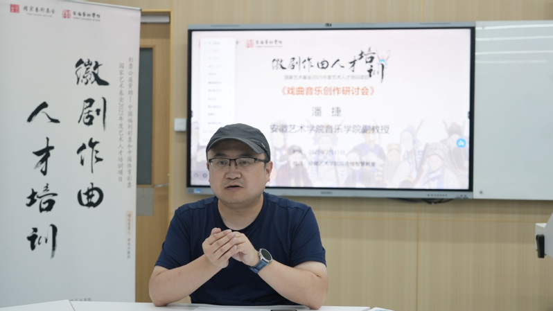 当晚,安徽艺术学院潘捷博士主持《戏曲音乐创作研讨会》(一)。