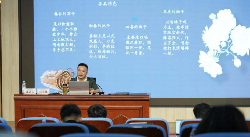 课程第一部分回顾四大徽班进京的历史,剖析徽剧与汉调、昆曲、秦腔等多元素的文化融合,以及南北艺术碰撞的过程,强调戏曲艺术未来发展中学习锣鼓经的重要性。