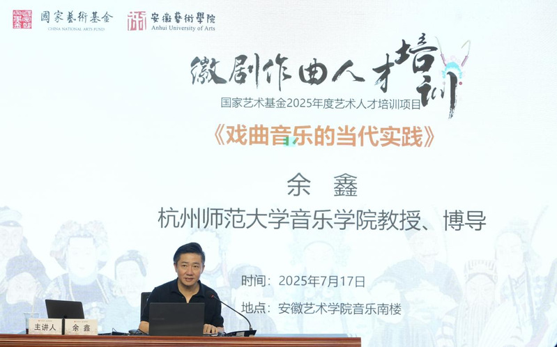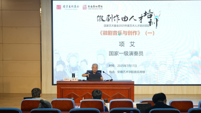 下午,安徽省徽京剧院一级演奏员项艾主讲的《徽剧音乐与创作》(一)课程开讲。