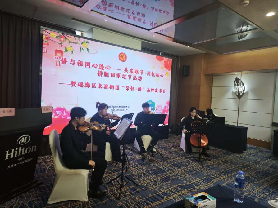 安徽艺术学院“文艺轻骑兵”弦乐四重奏表演了《花好月圆》《我爱你中国》等双节同庆主题曲目,传承和弘扬中华文化,进一步促进了侨胞与家乡的情感交流,增强了侨胞们的文化认同感和民族自豪感,以艺术赋能侨务工作。
