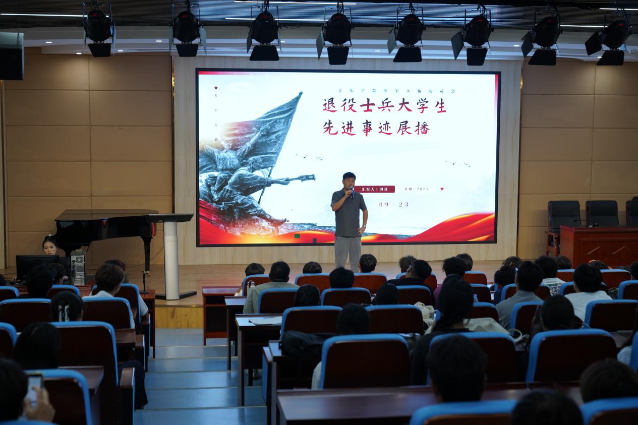 9月23日,音乐学院报告厅举办优秀毕业生创业分享会暨退役士兵宣讲会,特邀2023届优秀毕业生周天喻、2024级音乐表演(钢琴班)退役士兵刘潇主讲,百余名学生参与。