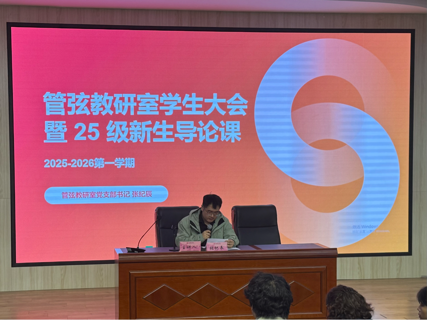 11月5日中午12:45,管弦教研室于音乐南楼报告厅召开2025级新生见面会暨专业导论课。本次活动由管弦教研室党支部书记张纪辰主持,教研室全体教师参会。