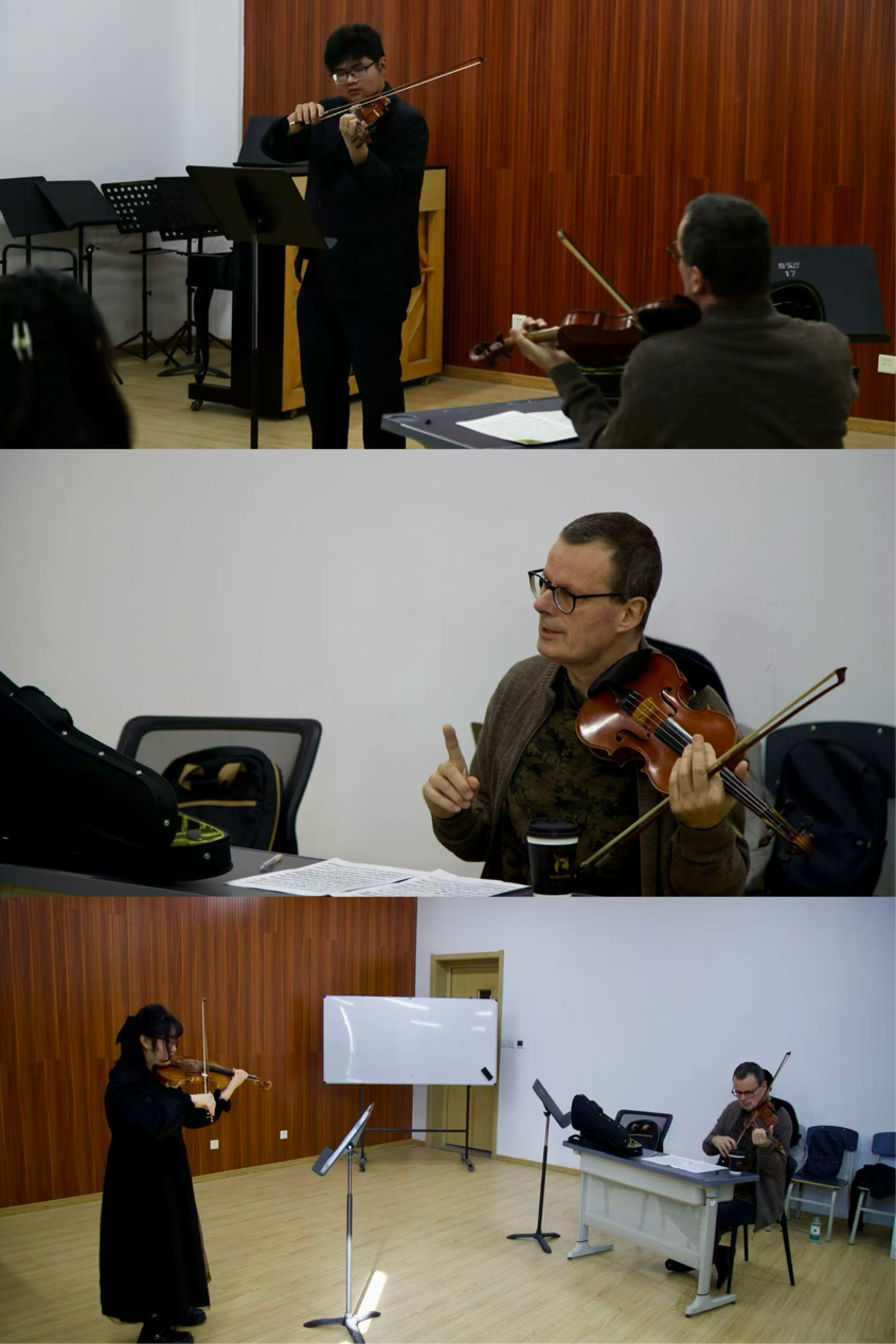 11月26日9:30,安徽艺术学院“四季音乐会·乐坛来风”系列之鲁道夫·库尔曼小提琴大师班在音乐南楼215教室顺利举办。