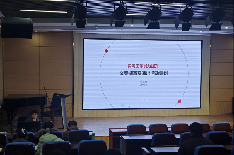 3月12日下午,“2026届音乐学院毕业实习校内实习培训计划”系列活动之《文案编辑和活动策划》专题讲座在音乐南楼报告厅举行。本次讲座由国乐教研室主任朱泽军主讲,2026届全体毕业生参加。