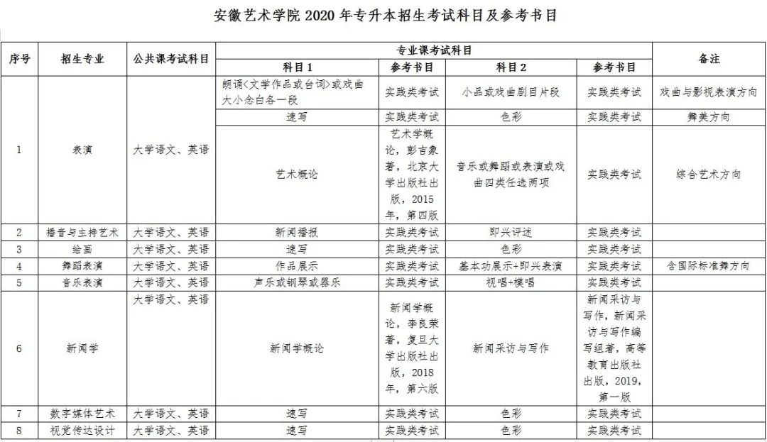 根据安徽省教育厅对2020年专升本招生工作的统一安排,现将我校2020年专升本招生相关专业的参考教材公告如下: